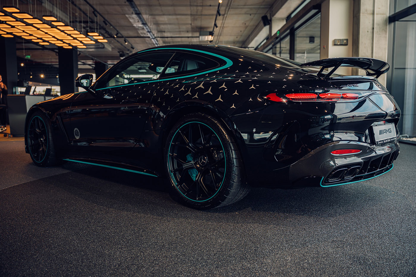 Под капака на този спортист работи 4-литров V8 битурбо двигател с мощност 450 kW (612 к.с.), осигуряващ върхова динамика и типичното за AMG изживяване. Моделът се отличава със специално лаково покритие Obsidian Black Metallic, ръчно рисуван звезден мотив и акценти в цветовете на PETRONAS, както и с елементи от висококачествен карбон и 21-инчови AMG ковани джанти.